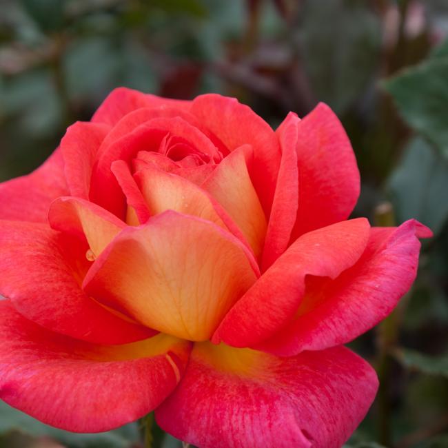 Große zweifarbige Blume mit einem regelmäßigen und dichten Wuchs. Mit ihren dunkelrosa Farben und gelboranger Rückseite erkennbar. Ihre eleganten Knospen öffnen sich langsam mit 44/61 Blütenblättern und duften stark nach fruchtigen und weinigen Noten. Das Laubwerk, erst pupurrot wird allmählich stattgrün und glänzend. Der Wuchs treib gut nach und ist sehr widerstandsfähig mit wenigen Stacheln. Von Mai bis Herbst reichblühend. Höhe: 80/90 cm. Benutzung. Geeignet für sonnige Blumenbeete. Als Schnittblumen für duftige Sträuße geeignet. SEHR STARKER DUFT!